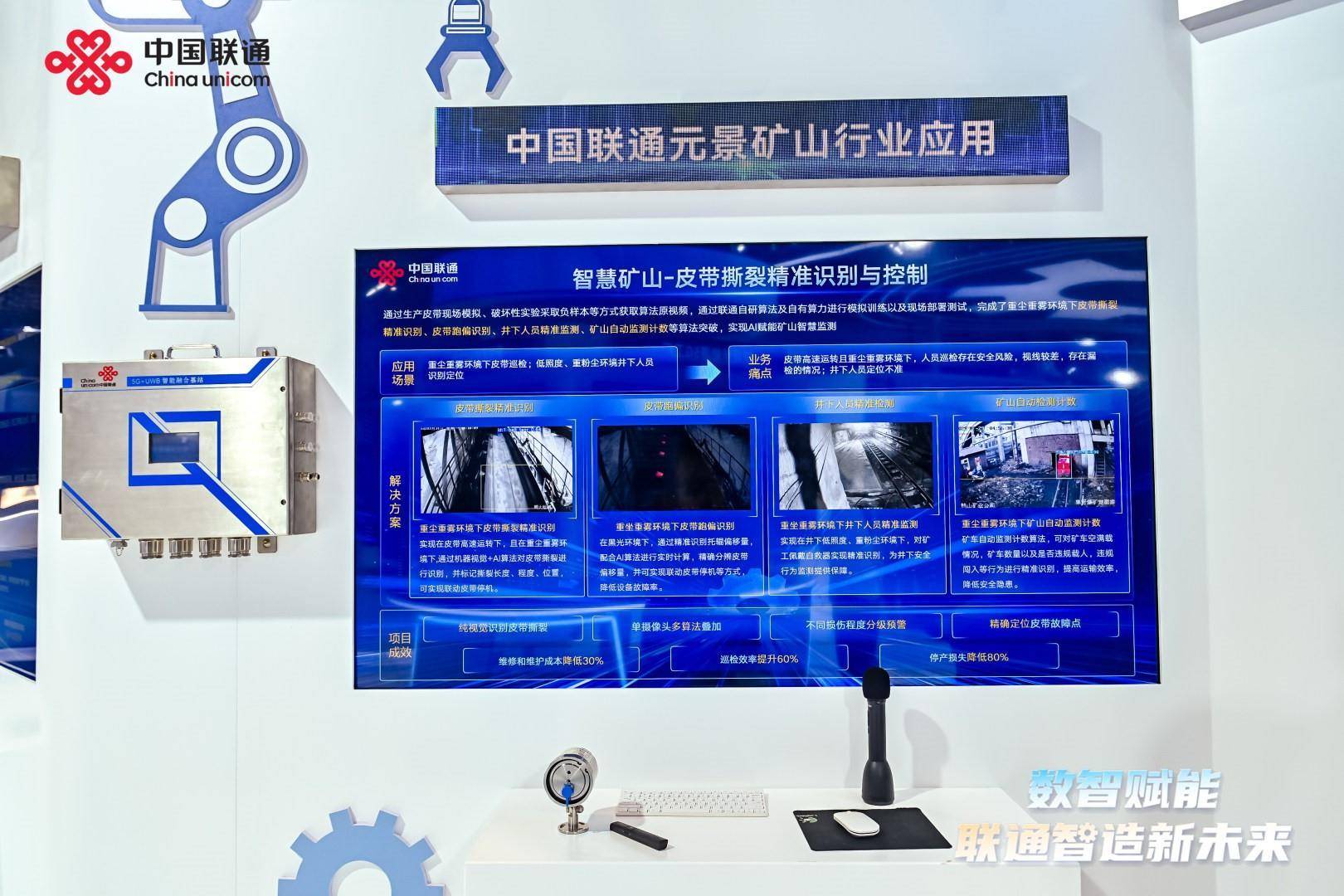此外,元景钢铁AI应用与矿山AI应用案例生动诠释了AI技术如何助力传统行业降本增效。在钢铁AI应用层面,中国联通在永洋特钢针对生产工艺流程复杂及多能源耦合的特点,全面感知副产煤气系统的煤气回收、存储、消耗、排放等活动数据。基于工艺机理与AI大模型技术,融合转炉煤气柜位、热风炉、加热炉煤气消耗量等实时数据,对副产煤气预测与动态平衡调度等关键过程进行动态建模、趋势感知与调度策略推送,实现了副产煤气动态高效管控,降低了生产成本,助力永洋特钢低碳、环保、智能发展。最终实现了吨钢煤气消耗降低5-10立方米,煤气管网压力波动降低20%。